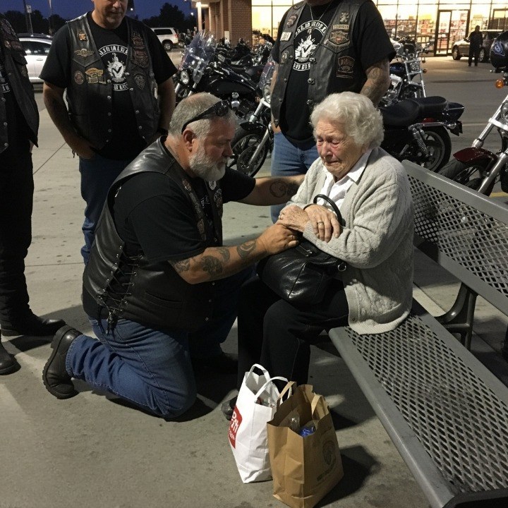 I was still staring at that text when the motorcycles pulled in. Seven of them, engines rumbling like thunder. Savage Angels MC, their vests read. I shrank into myself. An old woman doesn’t want trouble with bikers.