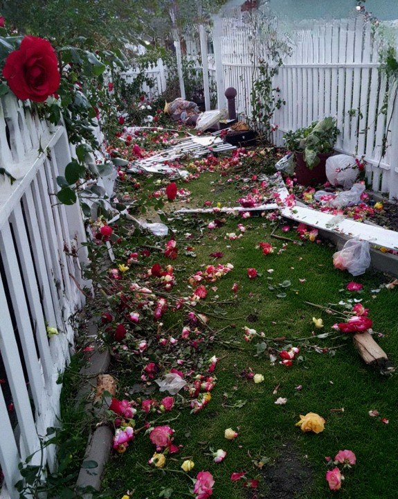 The trellis I’d built by hand was broken in half, tossed aside like scrap wood.