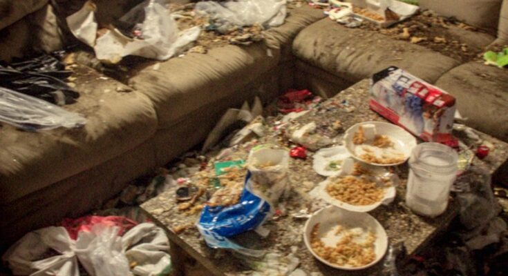 Two days later, I pulled into my driveway and knew before I opened the door that something was wrong. A limp balloon hung from the fence. The front door was ajar. Inside, the smell hit first—grease, sugar, and something sour that clung to the walls. My perfect beige rug was blotched purple and red like a crime scene of Kool-Aid. The cream couch wore frosting fingerprints and melted wax. Plastic cups and sticky soda rings tattooed the coffee table. My pale green flea-market vase—shattered. Water had warped the floorboards. In the kitchen: leaning towers of paper plates, crusted pizza, a lopsided cake smeared across the fridge shelf.