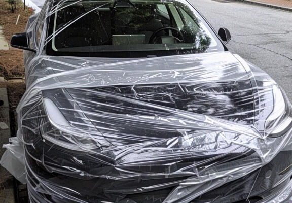 When I stepped outside, I froze. My entire car was wrapped—completely mummified—in thick, sticky tape. Every inch of it.