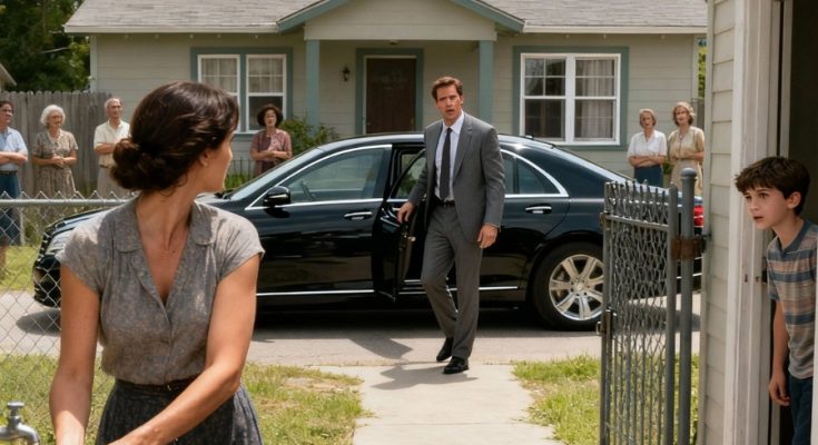Elena Ward had grown used to silence. Not the peaceful kind that settled over a home after bedtime, but the watchful, judgmental quiet of a small Midwestern town that pretended not to stare while staring every moment it could. For nearly a decade she lived beneath that gaze, moving through her days with her chin held high and her heart wrapped tight behind ribs that had learned to bear weight. Each morning she walked her son Jamie to the elementary school at the end of Cedar Street. The sidewalks were cracked, the maple trees drooped heavy after years of storms, and the neighbors leaned on fences or stood on porches wearing expressions that were neither friendly nor hostile—just calculating. Their whispers drifted just loud enough to be heard, but quiet enough to keep deniability. “Poor girl, raising a child on her own,” one woman would say while watering her dying petunias. “Such a shame,” another murmured.