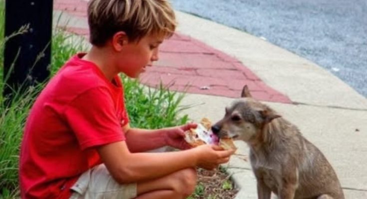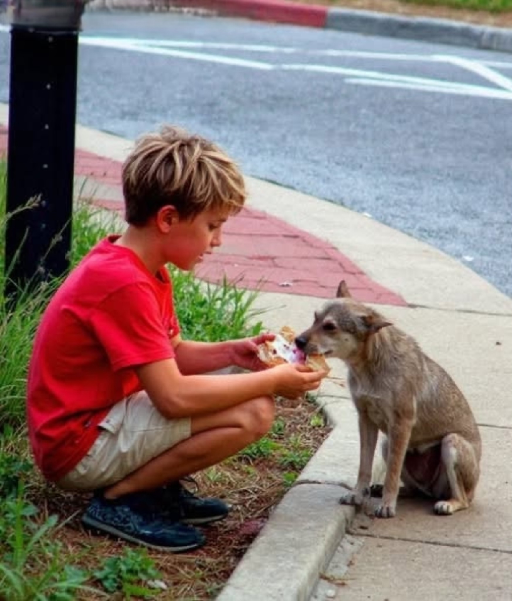 I stood there hidden behind a tree, watching my ten-year-old share his own lunch with a stray like he’d been doing it his whole life. Something about the scene — that scrawny dog, my gentle son, the easy familiarity between them — hit me in the chest.