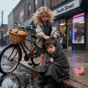 The hug smells like vanilla and home. “You’re safe now.” We’ll look for your dad together. She wheels him to the Fifth Street Community Center, where warm lights promise safety, even though she’s barefoot in the cold (her sneakers were traded for flour sacks).