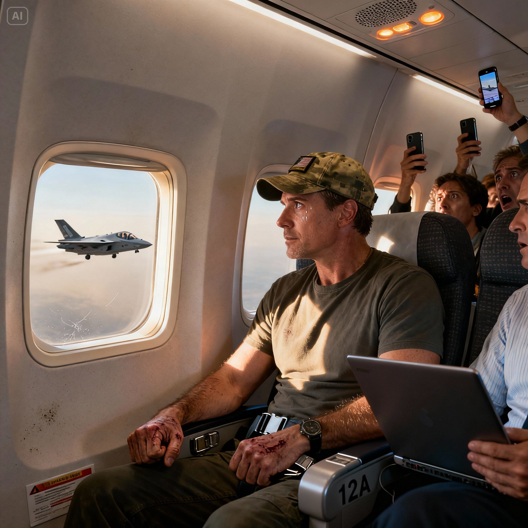 The flight to D.C. was routine, except for the quiet, bearded man in seat 12A wearing a tactical cap. Suddenly, the pilot announced a security escort: two F-35 fighter jets. While passengers pressed against windows to snap photos, the man calmly dialed a number.