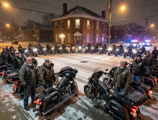 Then, the ground began to vibrate. It started as a low, guttural thrum that I felt in my teeth before I heard it with my ears. From the north and south, a river of headlights began to pour down the narrow street. Motorcycles—hundreds of them—emerged from the darkness like a literal wall of iron and leather. They didn’t just arrive; they occupied. They formed a massive, concentric circle around the orphanage, their chrome reflecting the blue police lights in a kaleidoscope of defiance.